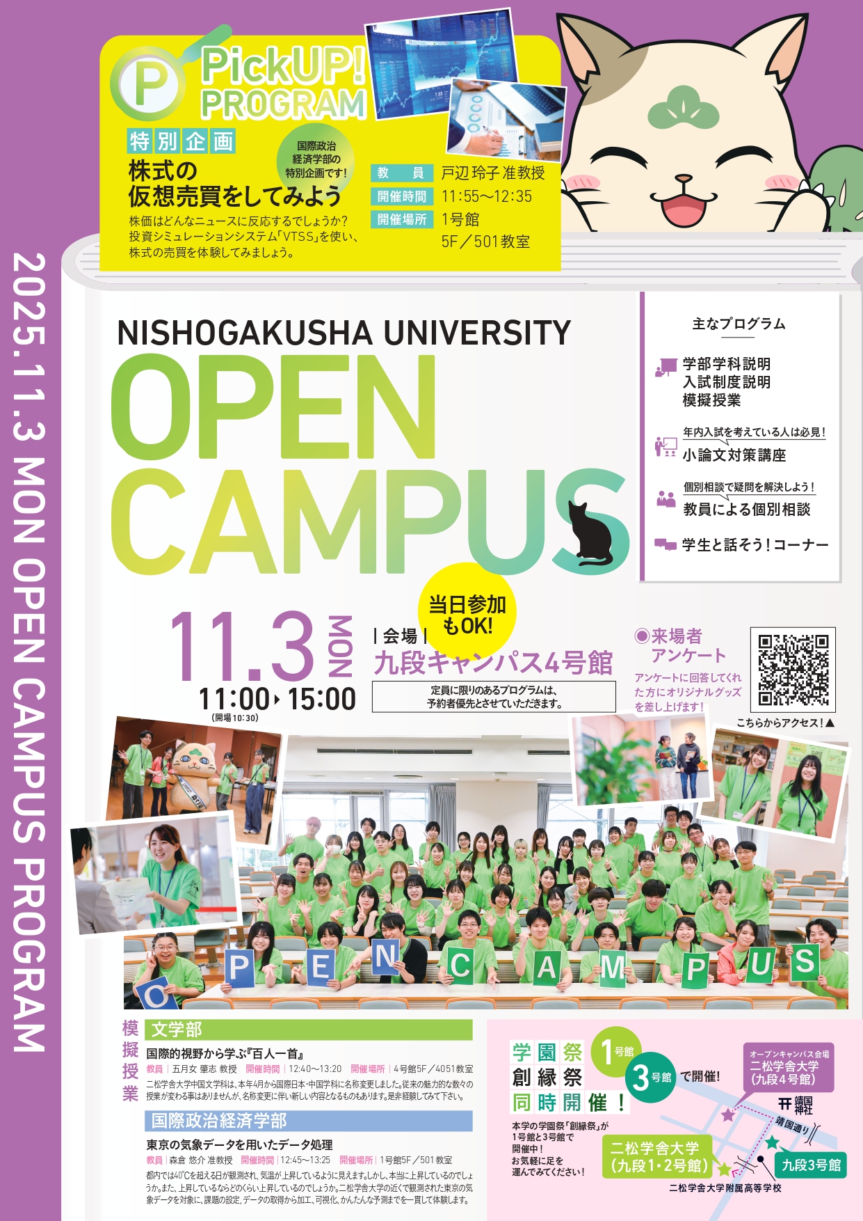 • 11月3日(月・祝)オープンキャンパスを開催します!