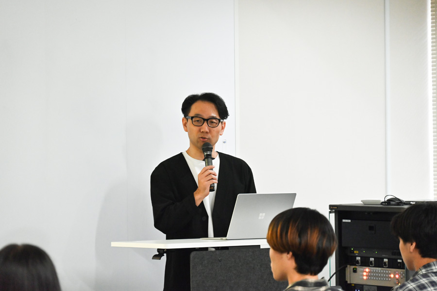 その後、産学連携先である株式会社マクロミルの熊谷信司氏(マクロミル・グローバルリサーチ・インスティテュート シニアフェロー)、長山大雅氏(第1事業本部 アカウントマネジメント2部 セールスユニット セールス1グループ リーダー)、塚本理子氏(第1事業本部 アカウントマネジメント2部 セールスユニット セールス1グループ)から企業紹介や自己紹介が行われ、これから実施していくマーケティングリサーチに関する説明が行われました。