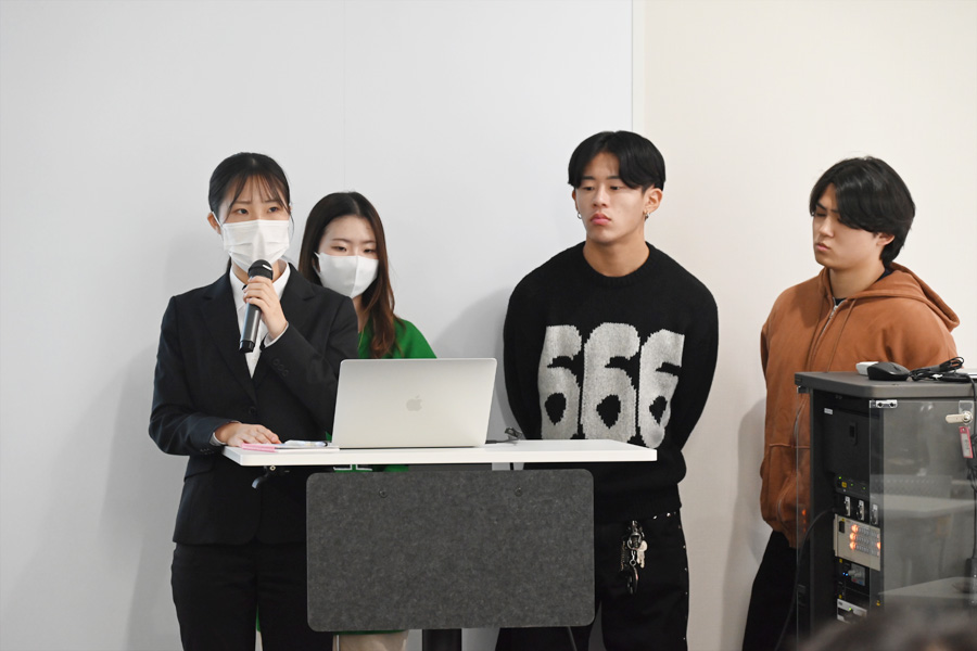 今年度は、シェービングやスキンケア関連製品の輸入・製造・販売を行うシック・ジャパン株式会社(本社:東京都品川区)との産学連携プロジェクトで、テーマは「Z世代のシェービング剤の使用率アップ」。Z世代に向けたコミュニケーション戦略案を提案します。今回の講義で学生たちは、これまでグループで検討してきた案を発表し、産学連携先の株式会社マクロミル(本社:東京都港区)の熊谷信司氏(マクロミル・グローバルリサーチ・インスティテュート)と小具教授から、ターゲット設定や提案内容について具体的なアドバイスをもらいました。