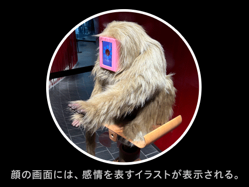 館内に入ると、猿型ロボット「アイアイ ウォーキー」がお出迎え。ゾーン1「いのちの歩み」の説明をしてくれました。