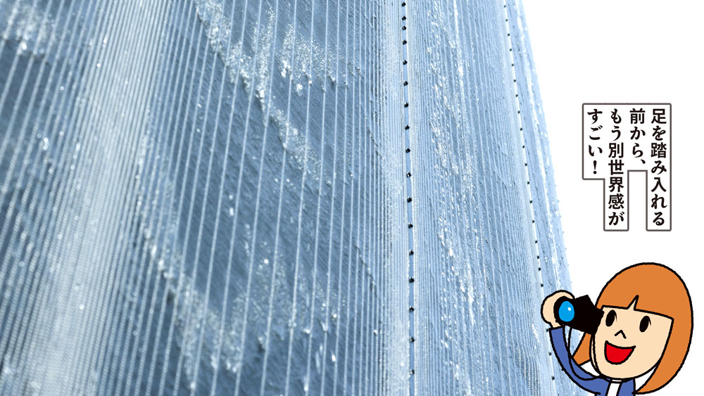 水は生命の象徴。屋上から流れ落ちて外壁をつたい、地面に広がって水面をゆらす光景は、地球に生命が芽吹き、現代、そして未来へ連綿と続いていく営みを思わせます。静けさの中に、何かが始まろうとしている期待に胸が弾みます。
