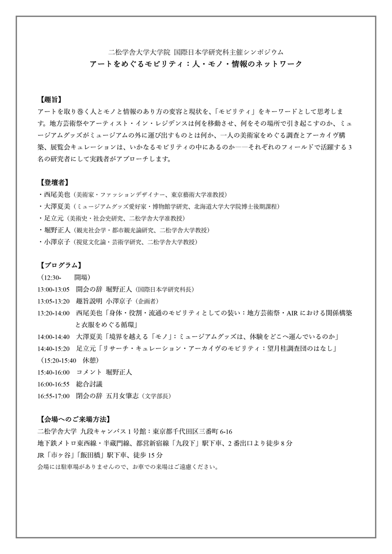 二松学舎大学 国際日本学研究科 公開シンポジウム「アートをめぐるモビリティ」(2月22日(日))開催のお知らせ