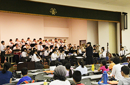 講演に先立ち、附属柏中学校・高校吹奏学部によるウエルカムコンサートや、附属柏中学校・グローバルコース2年生の英語による学校紹介も行われました。