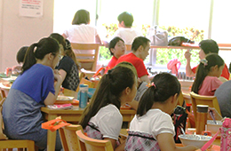 また、講演の後には、柏キャンパス見学ツアーも実施。附属柏中学・高校の生徒も利用できる大学の図書館や、附属柏中学・高校の体育館などを巡り、最後は、大学1号館で学食を体験していただきました。