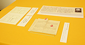 『中央公論』の名編集長と言われた滝田樗陰(1882年~1925年)が「夏目先生と書画」(『文豪夏目漱石』春陽堂)で漱石の屏風について述べており、また、漱石夫人・夏目鏡子の回想録『漱石の思ひ出』(改造社)にも、大正9年の漱石遺墨展覧会に屏風が出品された記述があることから、本学が購入した屏風が1920年の漱石遺墨展覧会に出展されていたとすれば、今回の公開は、約百年ぶりのこととなります。