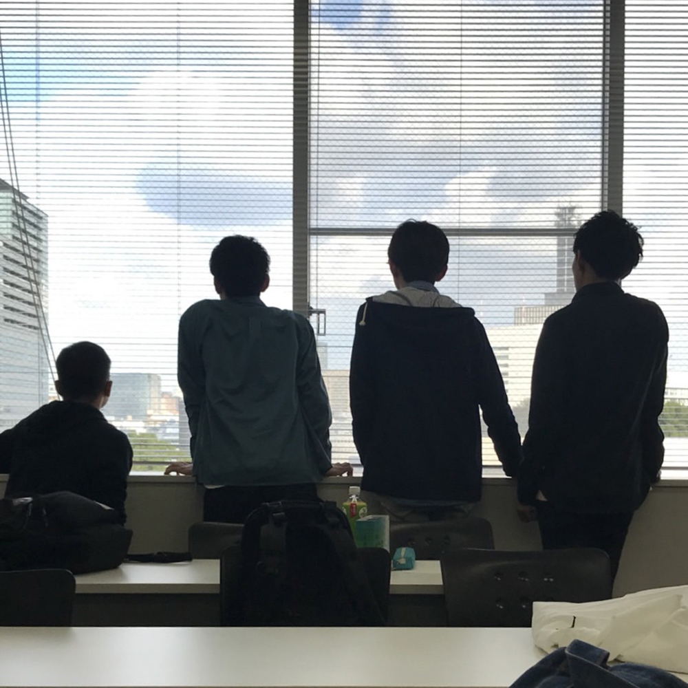 3年前、授業前にみんなで外を眺めていた時の写真です。二松学舎の窓から見える風景はとても美しく、見ていて飽きません。今はコロナ禍で登校が難しくなってしまってしまいましたが、こうしてまた4人で語り合いたいなあとこの写真を見ていると思います。